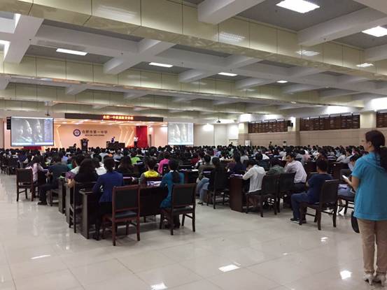 下午三点,邓林园博士来到了合肥一中报告厅,为高三家长们带来了一场关于“高三,如何与孩子一起从容备高考?”的讲座,屋外骄阳似火,报告厅内家长们听得聚精会神,当邓老师讲到精彩之处,家长们纷纷拿出纸笔记录下来。