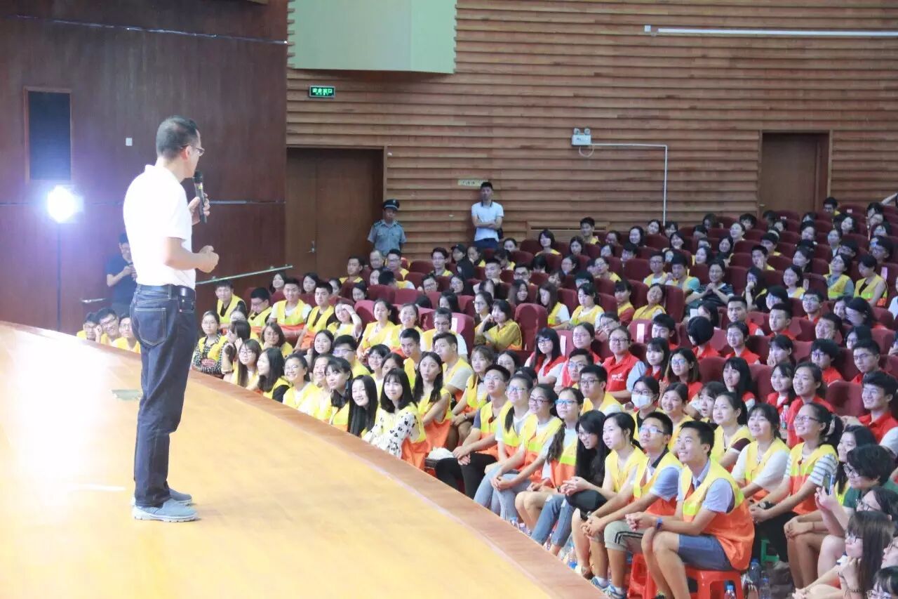9点半对两千多位高校志愿者讲课,他们都是早上坐大巴,从厦门各高校赶过来的。新东方演讲师艾力也和我一起,来给志愿者培训。我讲了语言能力的必要性和如何克服内心障碍寻找成功的机会,学生们对演讲内容反响热烈。10点半结束演讲,我坐车回城,去厦门大学,艾力留下来继续讲课。