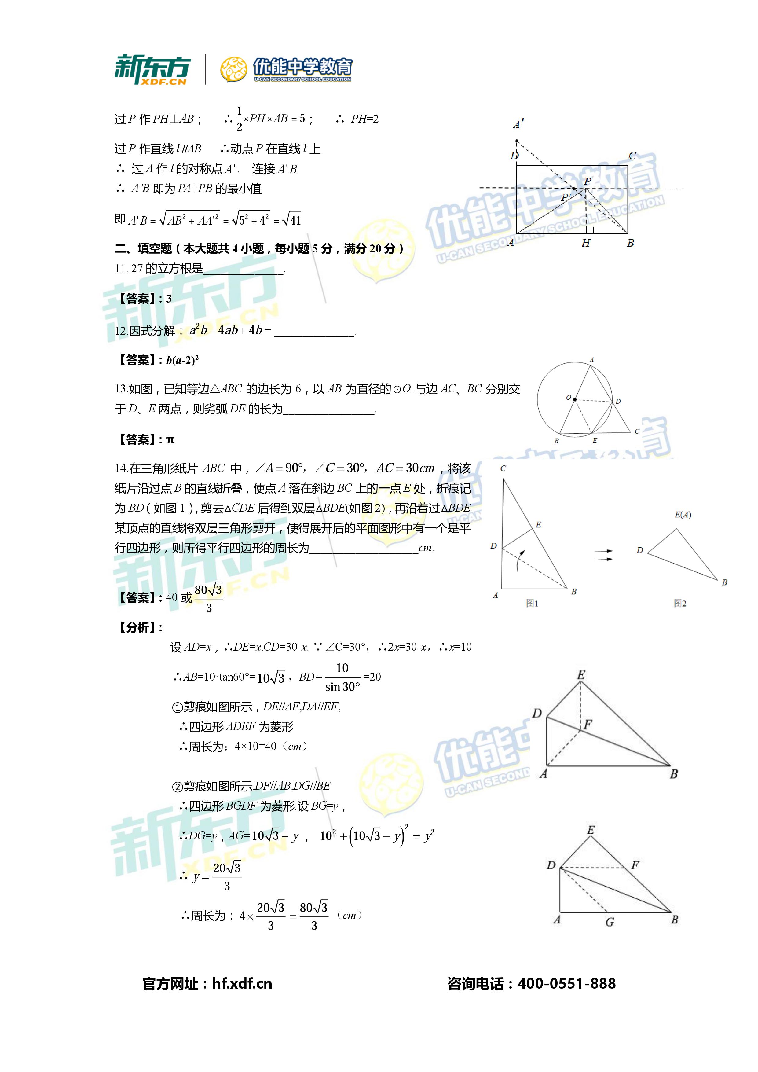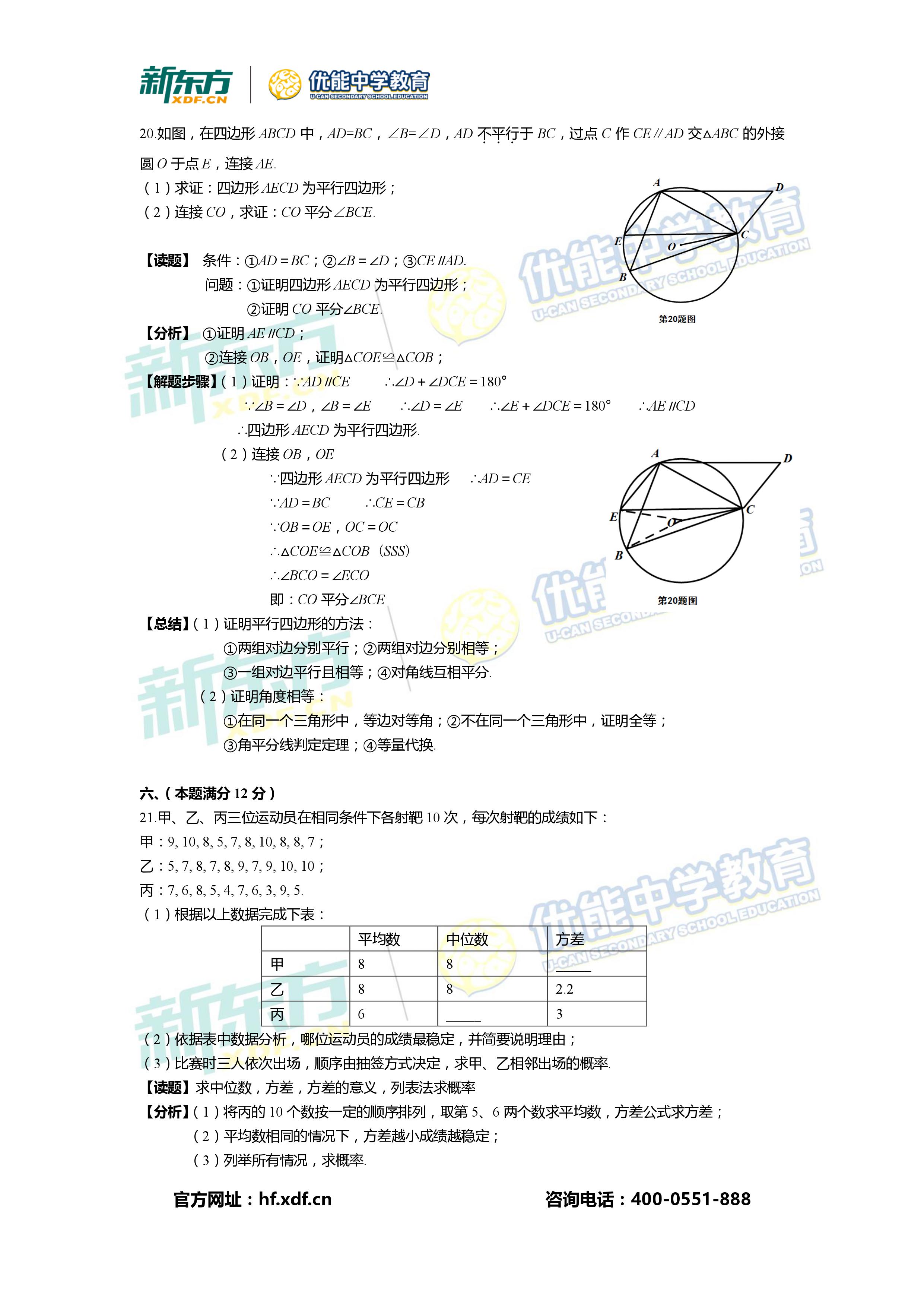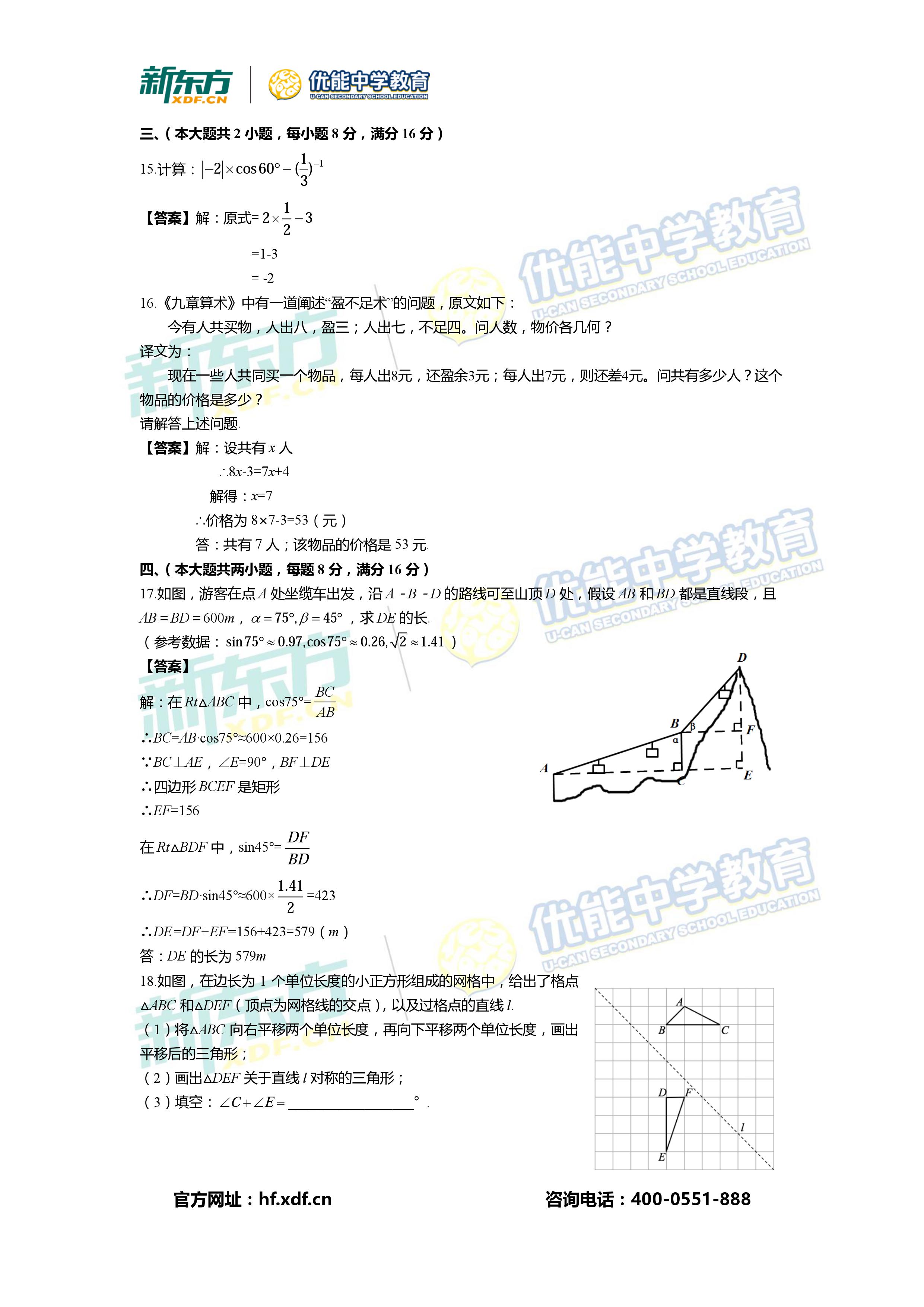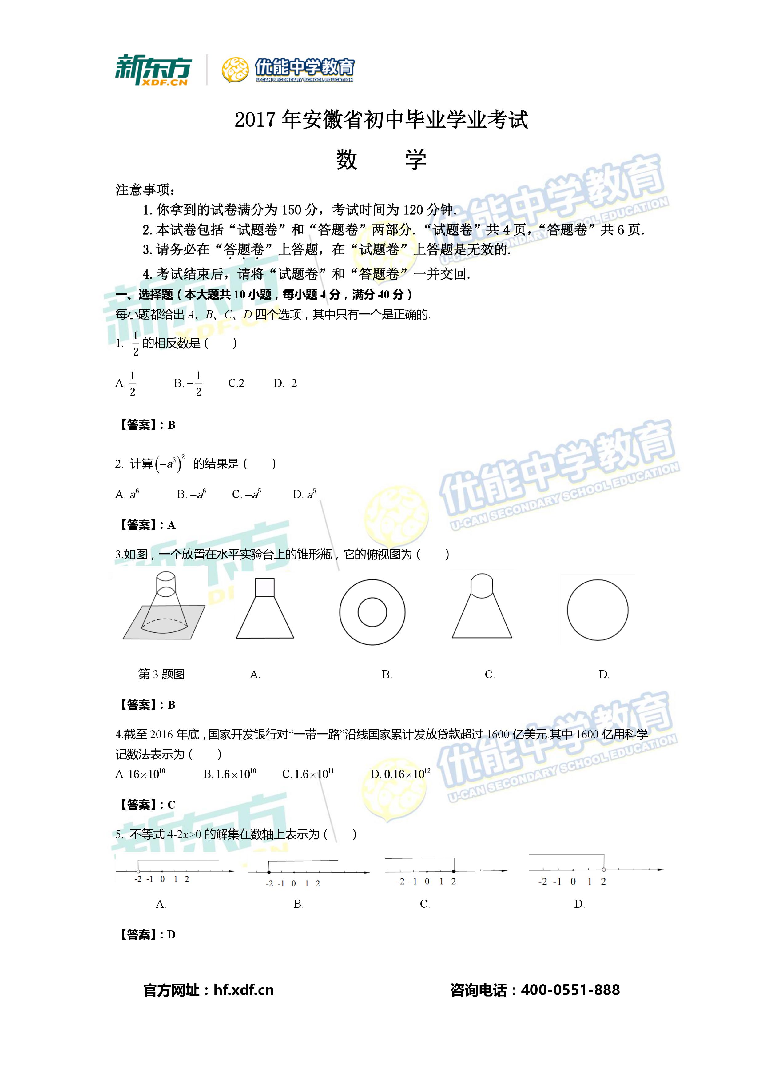 【高考】2017安徽中考试卷解析:数学(新东方版本一)