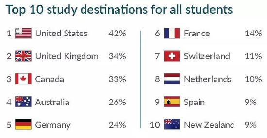 P.S.包括中国在内的亚洲地区,大家更偏爱去美国(40.6%),澳洲(32.3%),加拿大(31.9%),英国(31.3%),和德国(26.4%)。